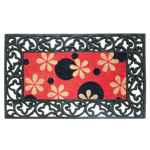Bright colors and elegant details make this mat a great way to welcome guests. Made from coir fibers and encased with durable, molded rubber and a heavy rubber backing, this beautiful rouleau doormat will stay in place. Coir is a natural fiber extracted from the fibrous husks of coconuts. It is tough, great at absorbing moisture, and naturally mold and mildew resistant, making perfect for trapping in the dirt and moisture from shoes.
