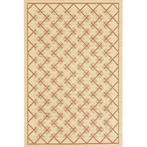 Sisal design 8' × 10' outdoor rug. Sisal look outdoor rug made from 100% polypropylene. Inspired by the beauty of natural sisal fiber rugs. Totally stain and waterproof. Just hose off with water to clean. Outdoor carpets bring elegance, warmth and beauty to patios and outdoor spaces. Color: Cream with brown accents. Dimensions: 8 by 10 feet.