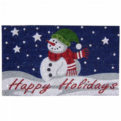 Made from coir fiber with vinyl backing with Happy Holidays message and snowman measures 18" × 30". Printed with fade- resistant dyes, is also excellent for low thresholds. Superscraper doormat is durable and effective in removing dirt from shoes.