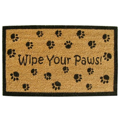 Made from coir fiber with vinyl backing with wipe your pows message measures 18" × 30". Printed with fade- resistant dyes, is also excellent for low thresholds. Superscraper doormat is durable and effective in removing dirt from shoes.