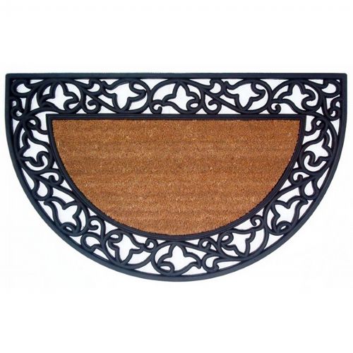 Bordered in a classic acanthus design, this fully biodegradable, half-circle mat measures 22" × 36". Crafted from coir fibers and encased with durable, molded rubber and a heavy rubber backing, this beautiful doormat will stay in place. Coir is a natural fiber extracted from the fibrous husks of coconuts. It is tough, great at absorbing moisture, and naturally mold and mildew resistant, making perfect for trapping in the dirt and moisture from shoes.