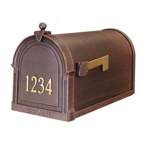 Special Lite LogoThe Berkshire Curbside Mailbox presents an impressive face. The one piece cast aluminum door features deeply cut details with a rich, leather grain textured panel. The stainless steel spring hinge and magnetic catch will keep the door secure and the rust proof cast aluminum body construction creates a weather resistant mailbox. This mailbox comes with your choice of 2" high stainless steel or brass self adhesive numbers for the front of your mailbox.