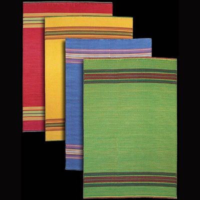 Outdoor mats by Madmats are durable and decorative. Designed to withstand outdoor weather conditions. Made of 98% recycled plastic. Outdoor mats are designed to look like indoor carpets. They are great for patios, outdoor spaces and pool sides. Totally waterproof. Designs include very vibrant colors. These beautiful outdoor mats are offered in 3 different sizes, 4' × 6', 5' × 8' and 6' × 9'. Cleaning is very easy. Just hose them off. Great on decks.