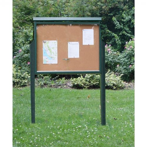 Large message center resinwood two side, two posts is the industry standard. Don't be fooled by low quality, light weight imitations.They are made with various sized resinwood slats, shatter resistant clear plastic sheet, top quality marine-grade cork, and specially coated locking mechanisms. Its posts are made from solid 4" × 4" resinwood boards. It is 51 × 36 inches and is designed to be weather resistant. It is available in standard colors of green and cedar.