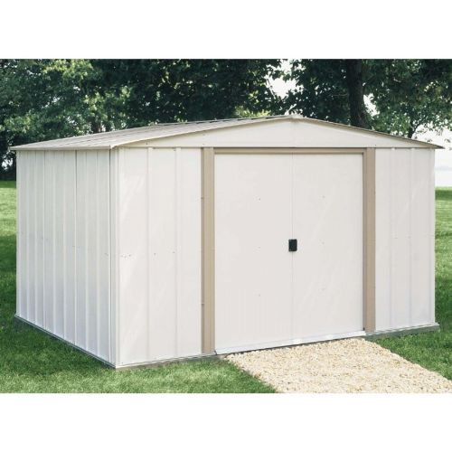 Arrow Salem 10 × 8 storage shed. It is made up of sturdy electro-galvanized steel. The mid-wall braced Salem is one of the most economical full-sized storage buildings that is offered. It is designed to meet a broad range of storage needs and the Salem is perfect for storing lawn and garden equipment, bicycles and other seasonal items large and small. It is one of the lowest cost storage solution and is easy to assemble.
