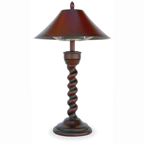 Table lamp electric patio heater New Orleans. This is the New Orleans table lamp style electric patio heater. This beautiful New Orleans style electric heater can heat up to 12 feet diameter. It is perfect for cool evenings. Its heater has a 1,200 W halogen bulb which is equivalent to approx. 4,095 BTUs of heat. It has 8 Ft. cord that uses a standard 120V grounded outlet. It has an automatic shutoff tilt switch. It is made of weather resistant hardware and requires simple assembly.