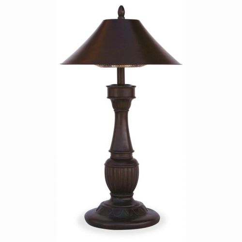 Table lamp electric patio heater Northgate. This is the Northgate table lamp style electric patio heater. This beautiful electric heater can heat up to 12 feet diameter. It is perfect for cool evenings. Its heater has a 1,200 W halogen bulb which is equivalent to approx. 4,095 BTUs of heat. It has 8 Ft. cord that uses a standard 120V grounded outlet. It has an automatic shutoff tilt switch. It is made of weather resistant hardware and requires simple assembly.