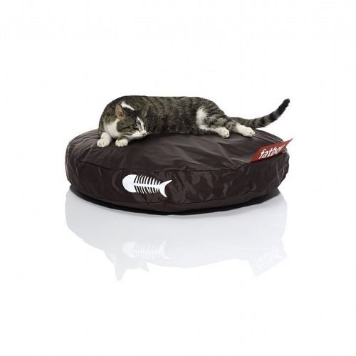 Fatboy Catbag cat bed in brown color. Comfort and style for your special friend. Fatboy® Catbag is made with polyester which makes it easy to clean. Ultimate cat bed is filled with virgin polystyrene beads to allow for the ultimate experience for your cat! Dimensions: 24 inches in diameter with 4 inches high. Designed by Jukka Setälä from Finland.