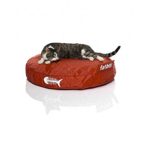 Fatboy Catbag cat bed in red color. Comfort and style for your special friend. Fatboy® Catbag is made with polyester which makes it easy to clean. Ultimate cat bed is filled with virgin polystyrene beads to allow for the ultimate experience for your cat! Dimensions: 24 inches in diameter with 4 inches high. Designed by Jukka Setälä from Finland.