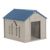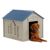 Our large dog house is for dogs up to 100 lbs. Color is Taupe with Blue roof. 11 inches wide by 20 inches high door. Large dog house offers easy snap together assembly. Durable resin construction. Vents provide air circulation. Removable roof for easy cleaning. Crowned floor with channel around inside edge to capture fluids and keep pet dry. Can be staked to ground. Vinyl doors included. Letters included for personalizing it with your dogs name.