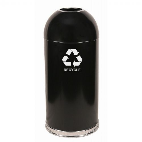 Dome receptacle with an open top for ease of co-mingle recycling. The open top also allows for hands-free disposal. The unit features a strong steel shell with a galvanized liner. Comes standard with a recycle decal for the body of the unit.
