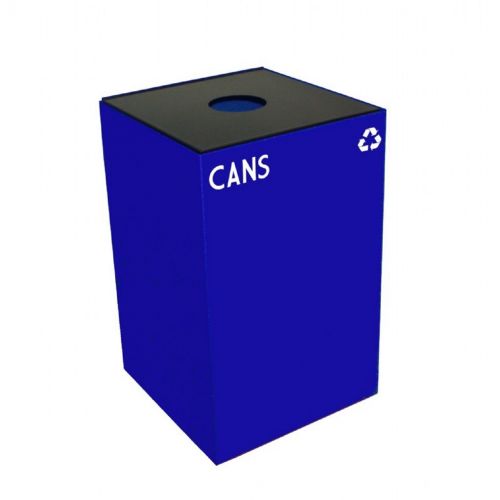 Square recycling containers are compact and space efficient. Available in a combination of 4 sizes, 4 standard colors and 4 lid options that allows you to choose the recycling program that's easy and works best for your needs. This blue steel container has a 24 gallon capacity and is meant for the recycling of cans.