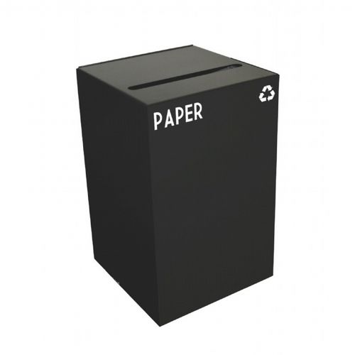 Square recycling containers are compact and space efficient. Available in a combination of 4 sizes, 4 standard colors and 4 lid options that allows you to choose the recycling program that's easy and works best for your needs. This charcoal steel container has a 24 gallon capacity and is meant for the recycling of paper.