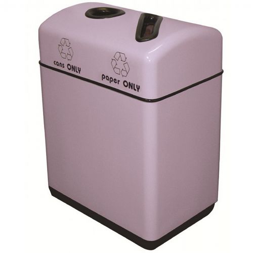 Recycling container your choice of 2 openings. Made of fiberglass which makes it impervious to rust and stains. Comes standard with 2 rigid plastic liners