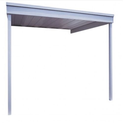 Arrow attached patio cover/carport 10' × 10'. It is made with strong vinyl-coated electro-galvanized steel. The patio cover/carport is perfect as an awning at the front or back of your house or trailer home. It is time to protect your entrance, patio area, or vehicle from inclement weather and baking sun. The patio cover/carport is designed to attach to your home and is easy to assemble since all parts are pre-cut and pre-drilled.