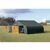 The DuPont ™ Premium powder-coated finish of the Peak Style Storage Shelter, 2-3/8" Frame, Green Cover 22 × 20 × 11 ft.'s all-steel frame resists rust and corrosion. The patent-pending ShelterLock® Stabilizers at every rib connection adds rock-solid strength and stability to frame. Bolt-together hardware at every connection point ensures maximum strength and durability. The Ratchet Tite™ Tension System and Easy-Glide Sliding Cross Rails keep the cover smooth and taut. Advanced engineered, commercial grade polyethylene woven fabric is UV treated inside and out to stand up to the elements. Ultra heavy-duty PVC cover also available. Universal steel foot plates for easy and solid connection to ground anchors, cement or pony walls. Front and back zippered doors for easy-access drive-through capability.