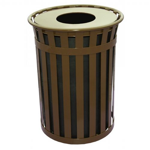 Witt Outdoor 50 Gal. Trash Receptacle Brown Steel with Flat Top W-M5001-FT-BN