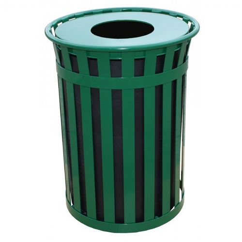 Witt Outdoor 50 Gal. Trash Receptacle Green Steel with Flat Top W-M5001-FT-GN