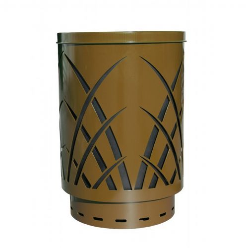 Witt LogoDecorative waste receptacle with a sleek, laser cut, contemporary saw grass design. Servicing is easy with a lift-off lid. Perfect for city streets, open-air malls, universities, parks, office complexes and many other environments. Made of heavy gauge galvanneal steel with a TGIC polyester powder coat finish for added durability. A protective coated base helps to eliminate paint chipping and rust rings. Comes standard with a rigid plastic liner, leveling feet, lid attachment kit and anchor kit.