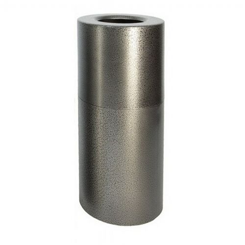Aluminum receptacle with silver vein, or hammered, finish. Two-piece design creates an overlap area and eliminates the visibility of plastic bags. Open top allows for touchless disposal. The upscale designs makes it perfect for hotel lobbies, airports, convention centers, suites in entertainment complexes, offices anywhere you want to achieve a high-end look.