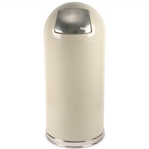Witt LogoDome top receptacle with push doors. Features a strong steel shell with a galvanized liner. Self-closing door effectively controls odors.