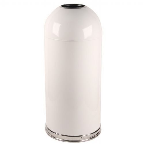Dome top receptacle with open top. Features a strong steel shell with a galvanized liner. Open top allows for hands-free disposal.