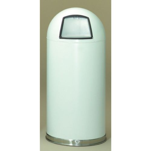 Dome top receptacle with push doors. Features a strong steel shell with a galvanized liner. Self-closing door effectively controls odors.