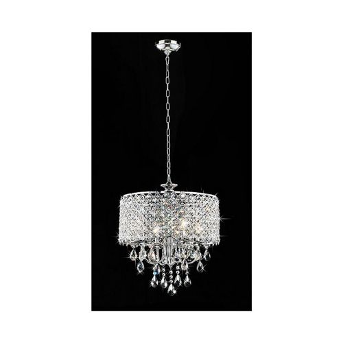Angelina Crystal Chandelier. This Angelina Crystal Chandelier creates a glamorous sparkling pendant that complements a modern look. Made of clear crystal, metal, stands W17"x H16", uses 4x60W bulb type E14 which includes 40" chain).