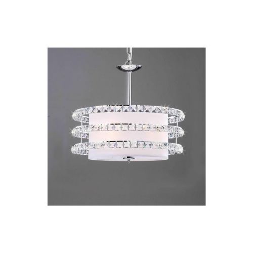 Elizabeth Crystal Chandelier. This Elizabeth Crystal Chandelier creates a glamorous sparkling pendant that complements a modern look. Made of clear crystal metal & white fabric, stands W46 × H19in, uses Bulb Qty:3 × 60W type E12, including 17 in chain.