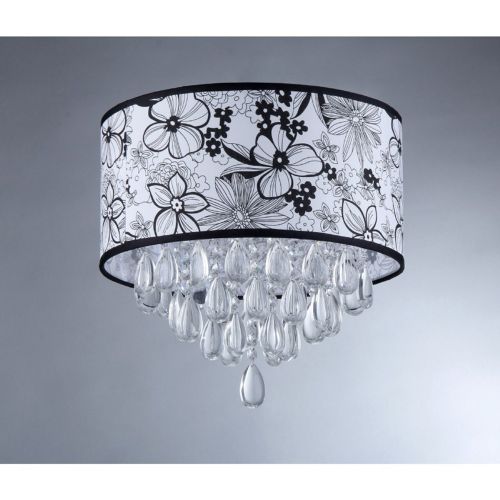 Flower Shade Crystal Chandelier. Cleanly lined flowers cover the surface of the Flower Shade Chandelier's circular shade. Below the shade hangs an assemblage of tear-shaped crystals that will glitter in its light. Sophisticated and uncomplicated, this chandelier can accompany clean, modern settings and lively, bright households as well.