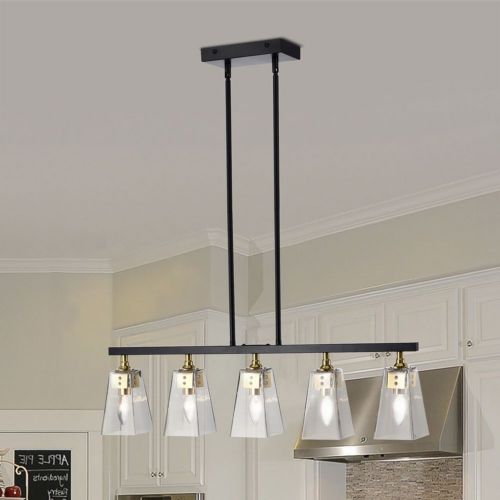 Folia 34" 5-Light Indoor Matte Black Finish Chandelier. Welcome your home to a treat with our 32-inch Matte Black Folia Island Chandelier. Our fixture includes four lights that are housed in cowbell-shaped glass shades that creates a lively and aesthetic environment when activated.