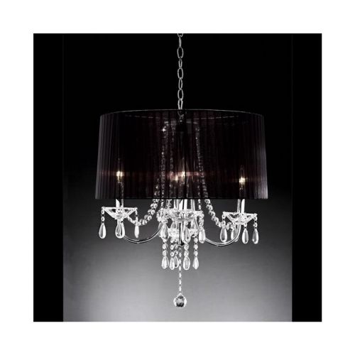 Helene Crystal Chandelier. This Helene Crystal Chandelier creates a glamorous sparkling pendant that complements a modern look. Made of clear crystal, metal, with black Faux Silk Drum Shade, stands W20" Deep20" H15", uses Bulb Qty: 3x40W type E14, including 40" chain.