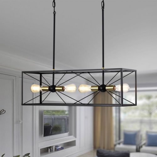 Judith 32" 4-Light Indoor Matte Black and Gold Finish Chandelier. Add the final touch to your home with our 32-inch Matte Black Judith Island Chandelier. Our fixture features four lights with an open shade that gives a unique and refreshing experience to your living environment.
