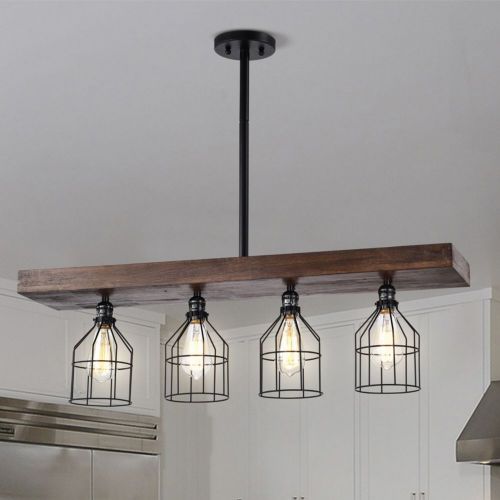 Malli 7.9" 4-Light Indoor Matte Black Finish Chandelier with Light Kit and Remote Introduce a warm and cozy environment with our 35-inch Faux Wood Grain and Matte Black Malli Island Chandelier. Our fixture features 4 lights that are bound to provide your evenings with everything that its been missing.