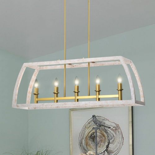 Nermin 39" 5-Light Indoor Satin Gold Finish Chandelier. Allow your home to indulge itself in our 39-inch Satin Gold Nermin Island Chandelier. Garnished in Weathered White, our fixture features 5 lights designed with a candelabra-style. Bound to enrich your days, make the right choice by introducing our 39-inch Nermin Island Chandelier to your home.