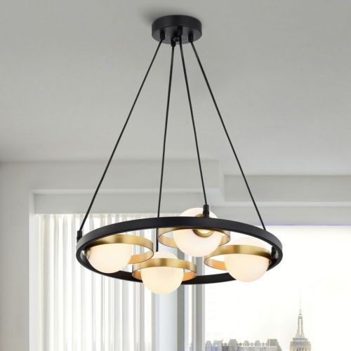 Pomponia 18" 4-Light Indoor Matte Black and Satin Gold Finish Chandelier. Walk into a breath of fresh air with our 18-inch Matte Black and Satin Gold Pomponia Chandelier. Decorative during the day and essentially beautiful at night, get the best of both worlds our 18-inch Pomponia Chandelier.