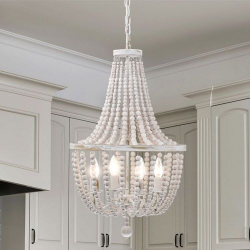 Samsa 16" 4-Light Indoor Weathered White and Matte Gold Finish Chandelier. Be welcomed to a refreshing and captivating environment with our 16-inch Weathered White and Matte Gold Samsa Chandelier. Our fixture features four 4 lights and are housed in a beaded covered shade that perfectly fits into many different home interior color schemes.