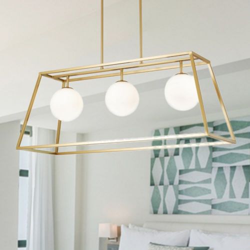 Sansan 35.4" 3-Light Indoor Gold Finish Chandelier. Refreshen your home with our 35-inch Gold Sansan Chandelier. Our fixture includes 3 lights that are housed in Opaque White glass globe-style shades and has a natural aesthetic appeal in any home. Don't wait, and turn your home into a dream come true with our 35-inch Sansan Chandelier.