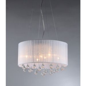 Spiraling Crystal Chandelier. Add some elegance to your home with this chrome-finished Spiraling Crystal Chandelier with its metal, wave-detailed shade. This dynamic lighting element features generous rows of cascading crystals to catch the light.