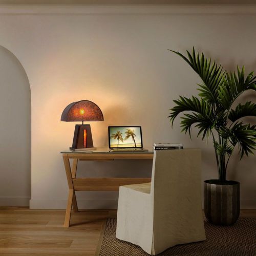 Natural Mica 25" Accent Table Lamp in Espresso and Weathered Brass with night light feature and 4-Way Rotary Switch. Created by designer, Michael Almodova, the Mica Accent Table Lamp it topped with a half-moon shade. The warm glow of the Mica shade creates a dome of shimmering light that highlights the unique characteristics of the natural material. In the body of the lamp, a nightlight gently glows from the center of the craftsman style base. The 4-way switch allows the user to turn on the top section,