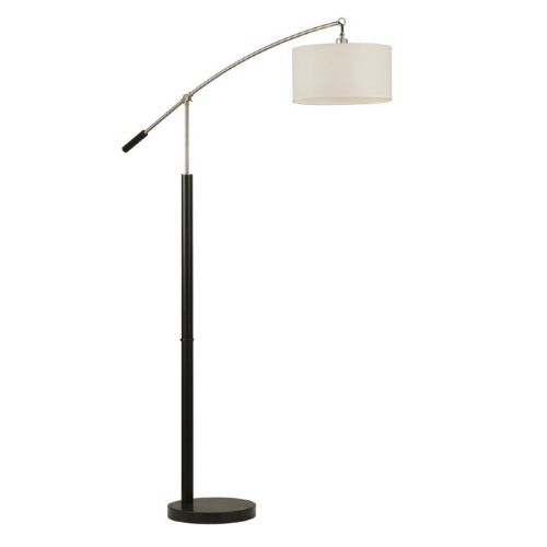 Oxford arc lamp. It is a casual contemporary style arc lamp by Nova Lighting. It is made of steel tubing and it has a brushed nickel finish. It operates with an incandescent type bulb of 100 watts that is not included. It comes with 1 socket and an on/off type of switch that is located on the socket. This is an arc lamp that provides enhanced illumination.