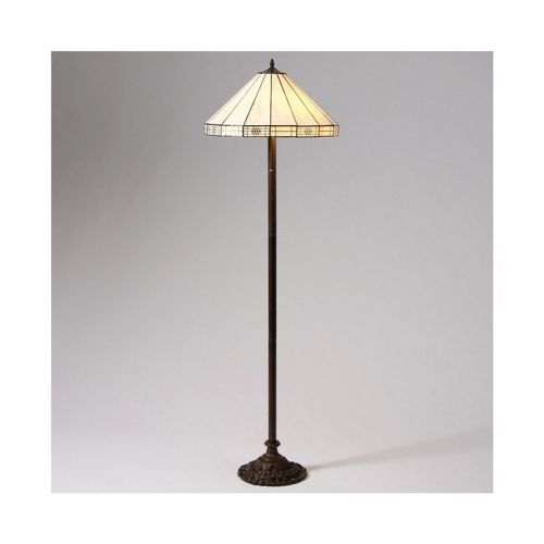 Tiffany-style Simple Floor Lamp. Handcrafted using the same techniques that were developed by Louis Comfort Tiffany in the early 1900s. This beautiful Tiffany-style piece contains hand-cut pieces of stained glass, each wrapped in fine copper foil. Tiffany-style simple mission floor lamp adds style to your home decor. Lamp base has a classic look with a bronze finish.