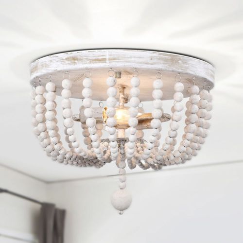 Aileen 14" 2-Light Indoor Weathered White and Matte Gold Finish Flush Mount. Liven up your living space and become one with your home with our 14-inch Weathered White and Matte Gold Aileen Flush Mount Ceiling Light. Our fixture features a beaded bowl-shape shade that houses two 2 lights and naturally gives out 'feel good' energy.