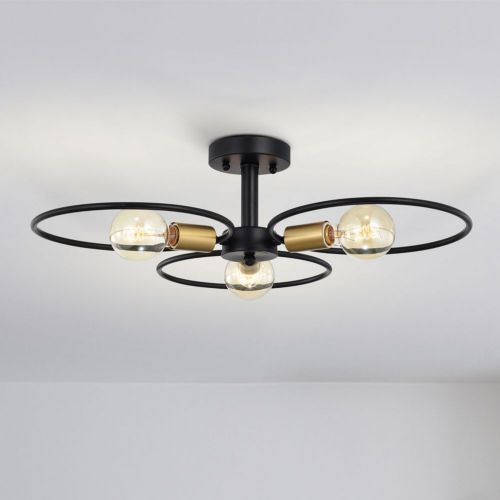 Lucina 25" 3-Light Indoor Matte Black Finish Semi-Flush Mount Ceiling Light with Light Kit and Remote Our 25-inch Matte Black Lucina semi-flush mount light has a timeless appearance thanks to its simplistic design. This fixture features 3 lights and creates a unique environment. With a touch a gold, our Lucina Semi-Flush Mount Light is the right choice to spruce up and enrich your environment.