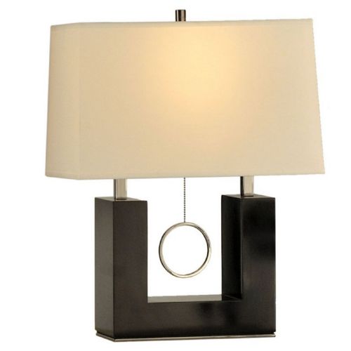 Earring reclining table lamp. It is a casual contemporary style table lamp by Nova Lighting. It is made of wood-MDF and it has a black gloss, black nickel finish. It operates with an incandescent bulb of 100 watts that is not included. It comes with 1 socket and a pull chain single type of switch that is located on the socket.