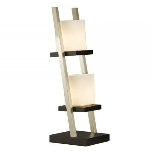 Escalier table lamp. It is a casual contemporary style table lamp by Nova Lighting. It is made of wood-MDF and it has a dark brown finish. It operates with an incandescent bulb of 60 watts that is not included. It comes with 2 sockets and on/off switch that is located on the inline/cord.