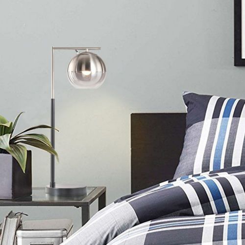 Orson Table Lamp 26" Brushed Nickel Touch - 4 Way. The Orson Table lamp offers modern details with a hint of vintage styling. The clean lines and directional lighting are perfect for enhancing bedrooms or lighting tasks in the home office. A sleek glass globe shade in a smoky finish creates a focused light beneath and gently diffused light from the side. The touch dimmer allows the user to control the light for any task. When used in conjunction with a smart switch, the Orson Table Lamp is compatible with Amazon Echo, Google Assistant, and Apple Home, and can be automatically turned on/off manually, by voice activation, or by scheduled settings. Nova was founded in 1923 with a commitment to creating original lighting designs that were well crafted with attention to detail and this piece is no exception.