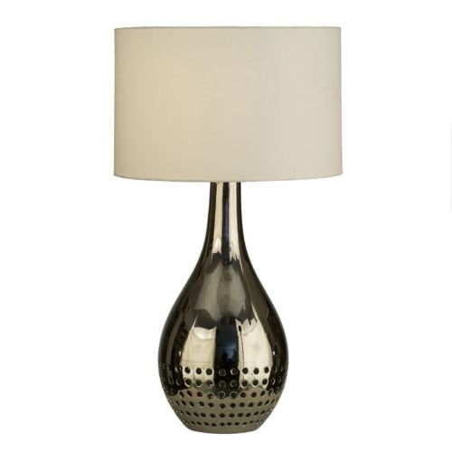 Perf table lamp. It is a casual contemporary style table lamp by Nova Lighting. It is made of ceramic-metalized material. It has a chrome finish. It operates with an incandescent type bulb of 7.5 watts that is included as night-lite. It comes with 1 socket and a 4-way rotary type of switch that is located on the socket.