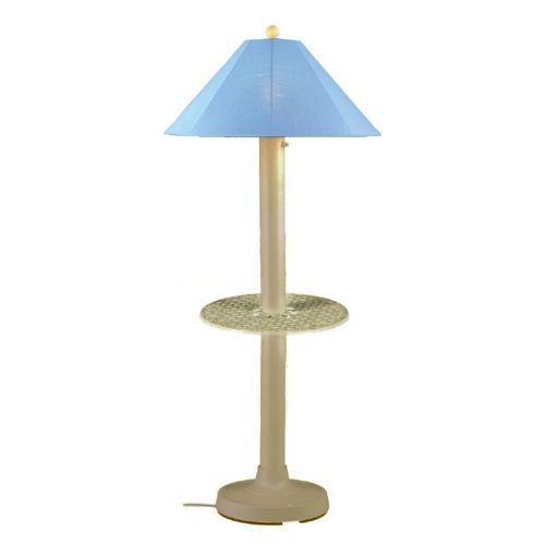 Catalina Outdoor Floor Lamp with Table Bisque. Carefree durability while adding a touch of style to any outdoor living area. Catalina Table Floor Lamp features a 3" bisque body, 19" diam. cast aluminum table, heavy weighted base and a diverse variety of Sunbrella shade fabric colors to choose from. 12 ft. weatherproof cord and plug. Two level dimming switch.