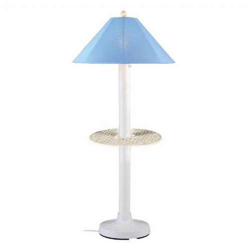 Catalina Outdoor Floor Lamp with Table White. Carefree durability while adding a touch of style to any outdoor living area. Catalina Table Floor Lamp features a 3" white body, 19" diam. cast aluminum table, heavy weighted base and a diverse variety of Sunbrella shade fabric colors to choose from. 12 ft. weatherproof cord and plug. Two level dimming switch.